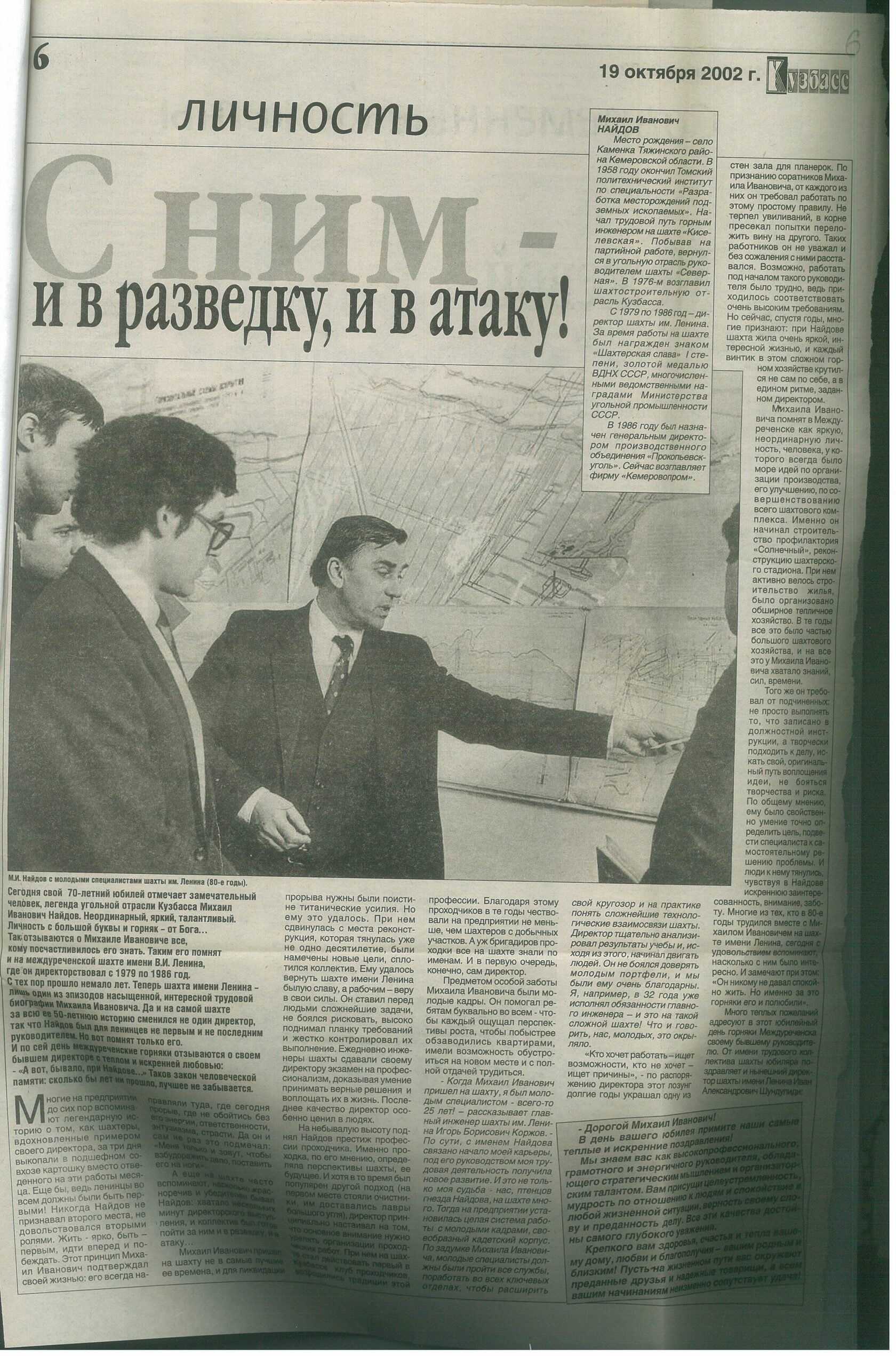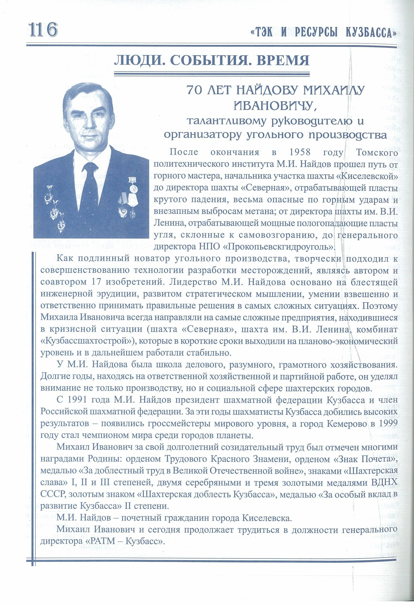 Статья «Люди. События. Время» в журнале «ТЭК и ресурсы Кузбасса». № 4/8. 2002 г. //