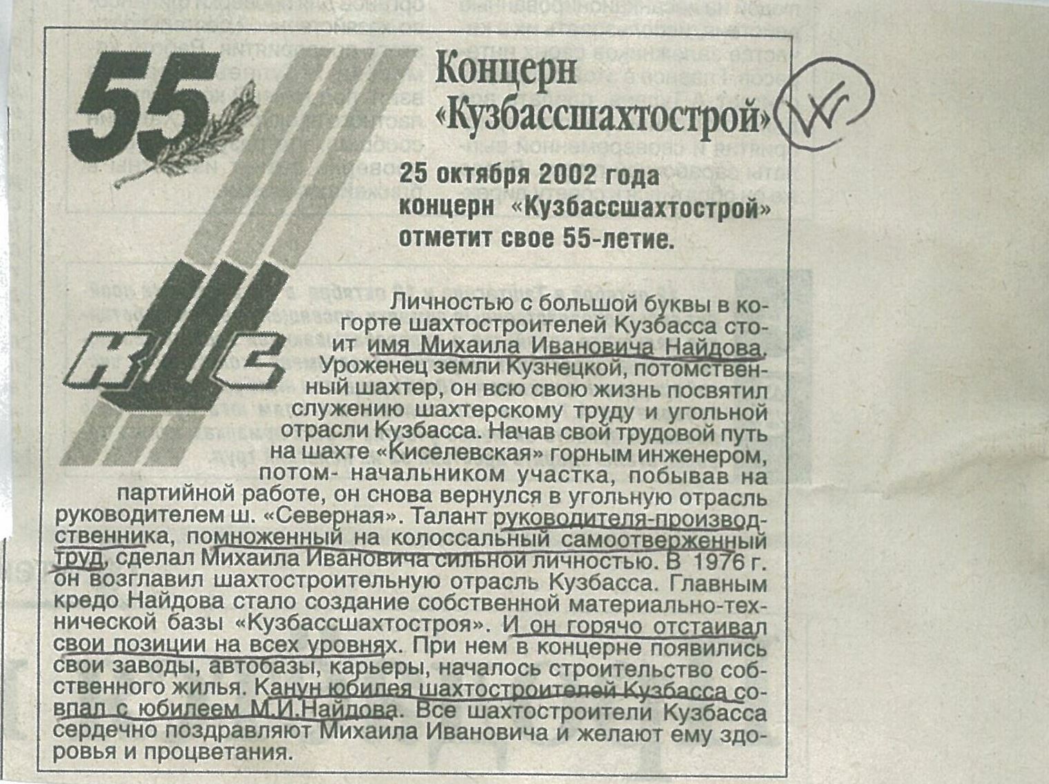 Статья «Полвека спустя» в газете «Кузбасс». 05.10.2002 г. //